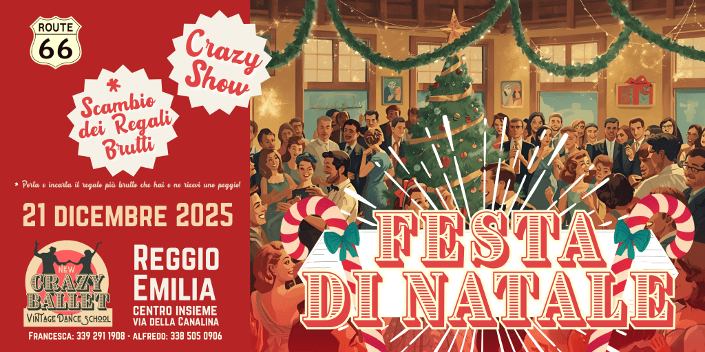 Dal 1976, New Crazy Ballet rappresenta la passione per i balli vintage americani. Fondata su un amore profondo per lo Swing e i generi musicali che dagli anni ’20 hanno rivoluzionato il panorama musicale negli Stati Uniti, la nostra scuola è stata tra le prime in Italia a diffondere lo Swing, il Lindy Hop, il Boogie Woogie e il Rock’n’Roll acrobatico. Da quasi 50 anni, il nostro obiettivo è trasmettere la cultura del ballo attraverso corsi di qualità ed eventi che fondono tecnica e divertimento. Unisciti a noi e scopri la magia del ballo!Eventi